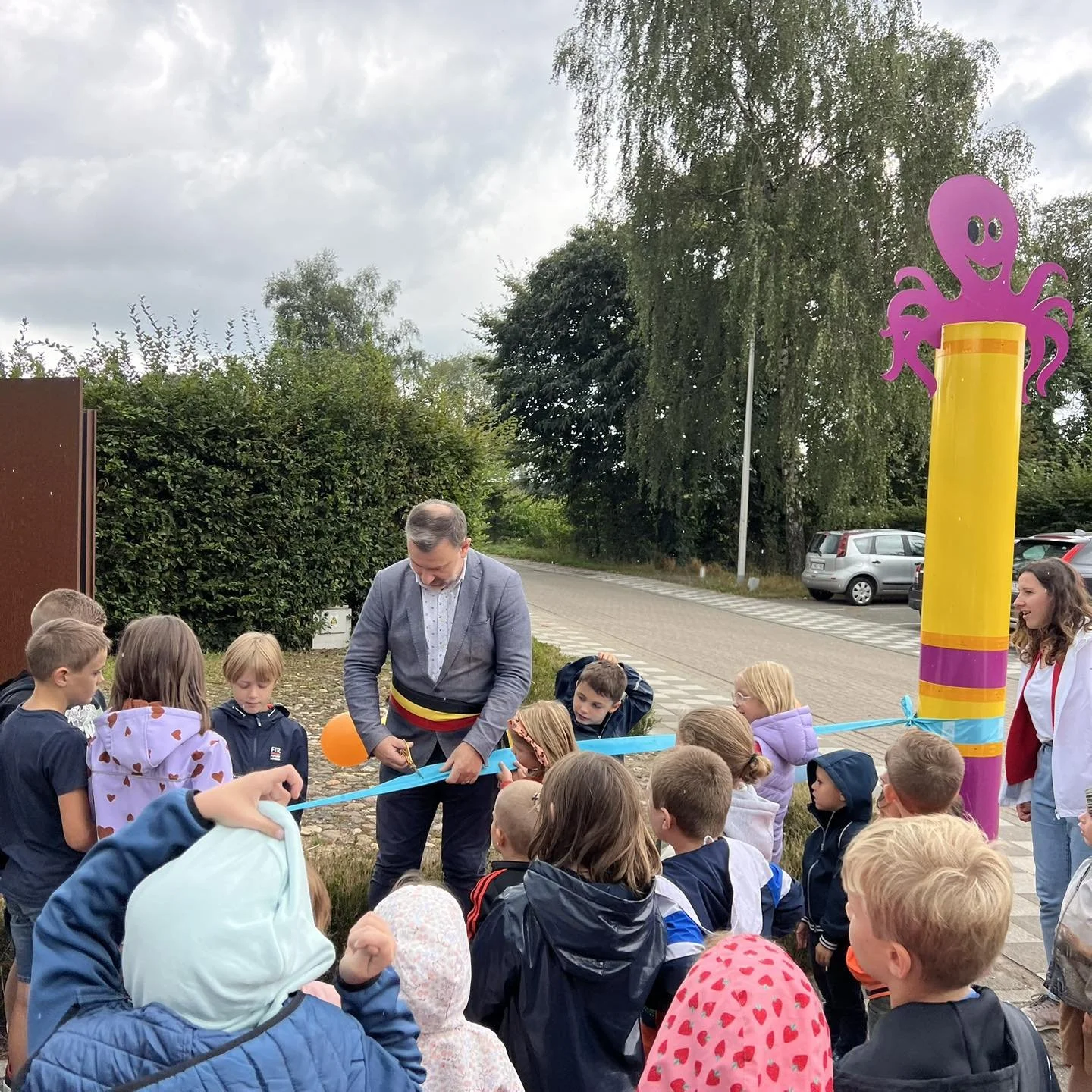 Vorig schooljaar kreeg ik een mooie brief van Joline en Till van Basisschool 't Stokpaardje in Erpekom met de vraag om een octopuspaal aan de school te plaatsen🐙. Deze zomer plaatsten we 11 octopuspalen om de Peerse schoolomgevingen nog zichtbaarder en veiliger te maken. Vandaag huldigden we de octopuspaal van Erpekom in samen met de briefschijvers👍👏.